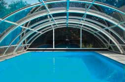 Der Cranpool Cabriodom besteht aus einer Aluminium-Konstruktion, die je nach Modell aus verschiedenen Glasarten und in verschiedenen Farben gefertigt werden kann. Die einzelnen Elemente sind mittels einer Gummilippe abgedichtet und können allesamt abgesperrt werden.